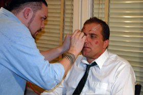 Getting make up on the set for Thug Angles